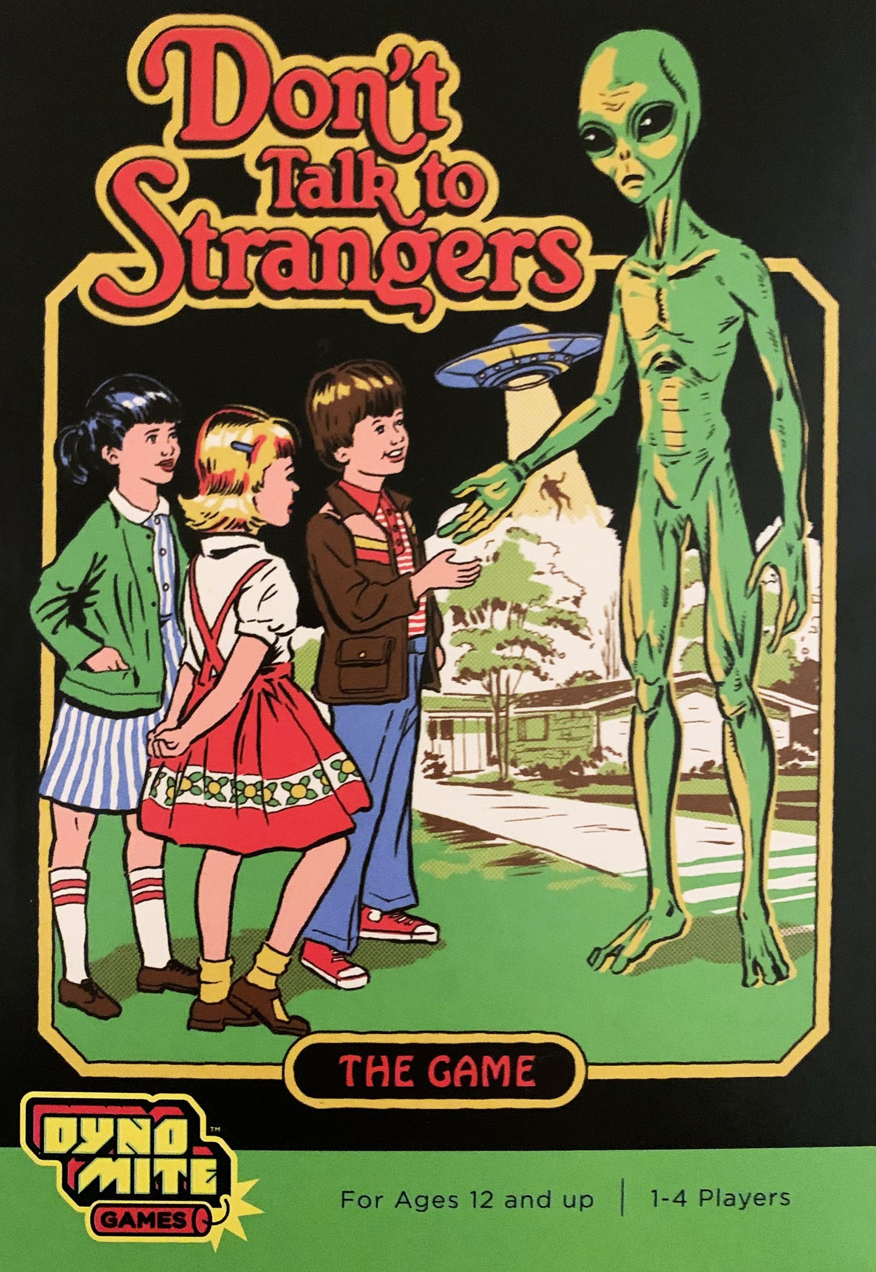 School’s out but otherworldly STRANGERS are here! Mom & Dad haven’t caught on yet so you’re on your own, kiddo. Play your cards as efficiently as you can, helping to navigate your Kids one at a time from SCHOOL to a SCORING space–in order to score as many points as you can before the neighborhood is completely overrun with STRANGERS!